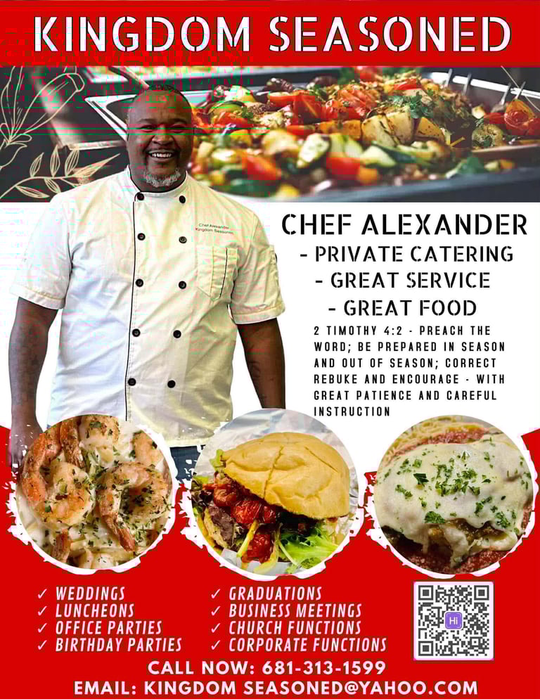 From intimate dinners to large events, we cater with care and flavor.
